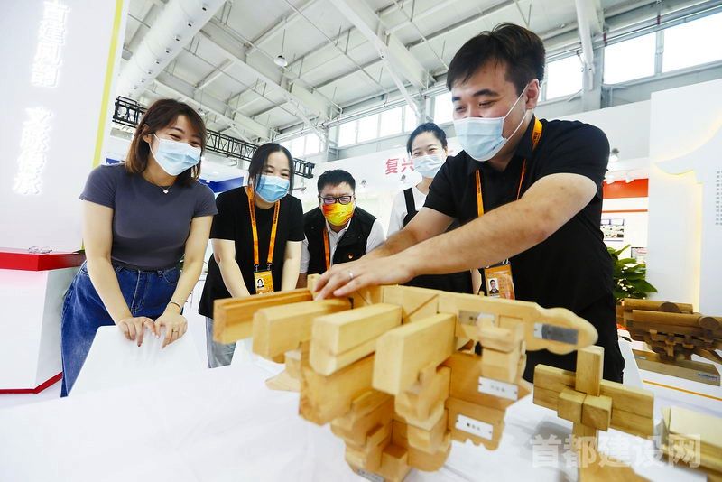 首开房地集团古建分公司工作人员现场拼装斗拱 ■记者 周宇杰/摄