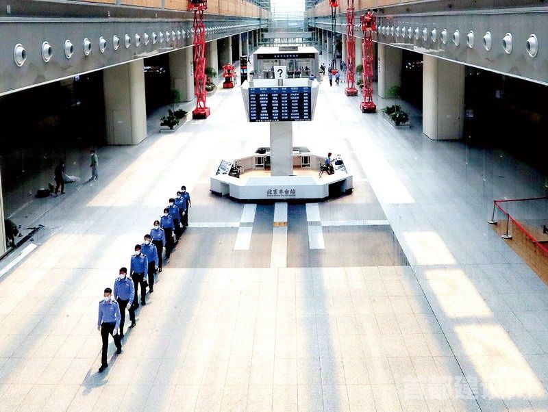 2022年6月,丰台站开站前夕各项准备工作就绪,一队站务员从站房中庭列队走过 ■记者 周宇杰/摄