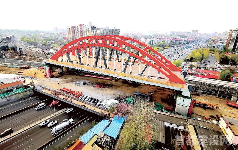 2020年4月,全国首座六线简支钢梁拱桥——丰台特大桥精准落位于西四环之上 ■记者 周宇杰/摄