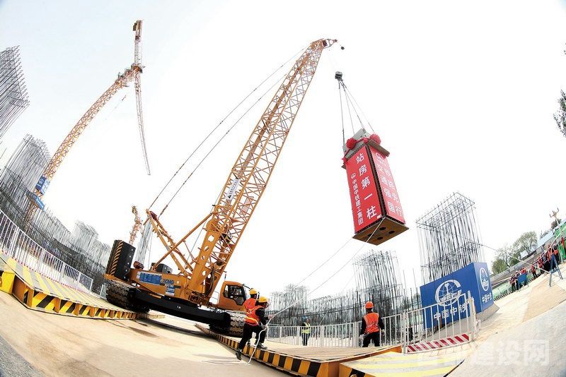2019年4月21日,丰台站站房第一根桩柱起吊安装 ■记者 周宇杰/摄