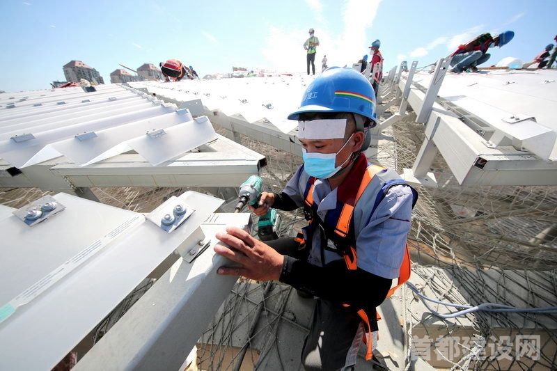 在建工集团北京工人体育场改造复建项目施工现场,屋顶施工的工人是“与太阳最近的人” ■记者 董一鸣/摄