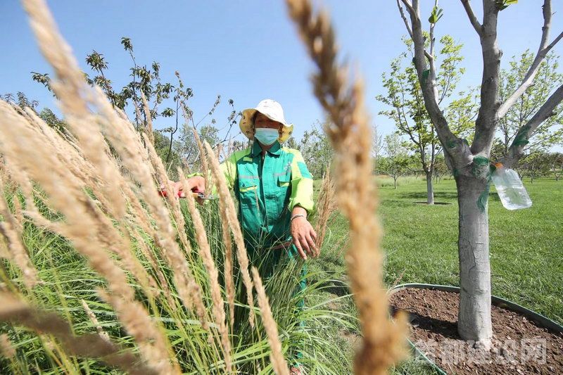 烈日当头,城市绿心森林公园养护人员正在对植物进行养护 ■记者 董一鸣/摄