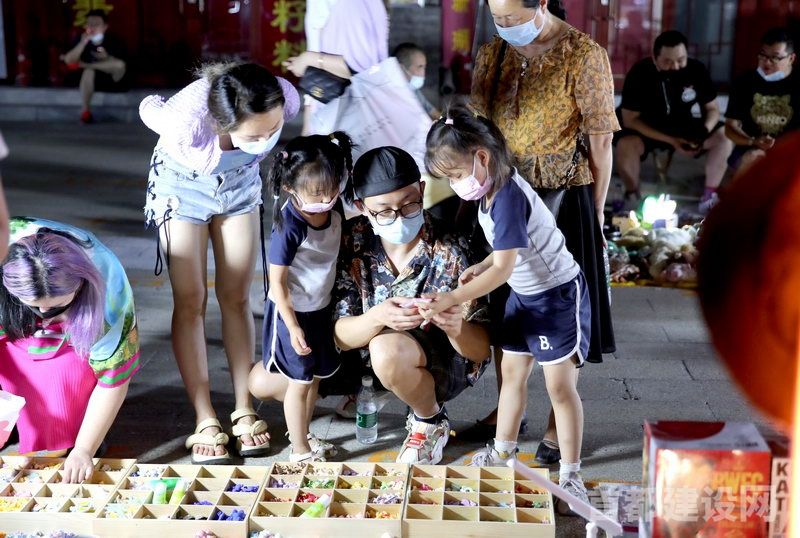 家长带着孩子逛潘家园夜市,重温儿时的回忆