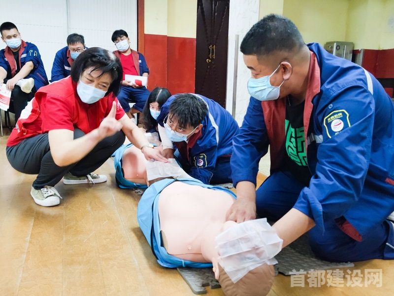 培训由aed理论讲解与实操培训两部分组成。首先,为了普及相关知识,北京市红十字会应急服务中心的老师现场讲解心脏复苏和全自动体外除颤仪(aed)的使用方法和注意事项。
