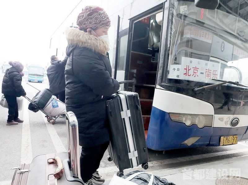 12月20日起,四惠、赵公口、六里桥三大长途客运站恢复运营,乘客正在搬运行李准备乘车