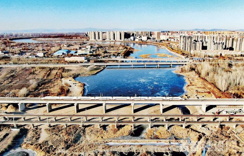 京唐、京滨城际铁路开通运营。图为列车驶过京冀界潮白河大桥。