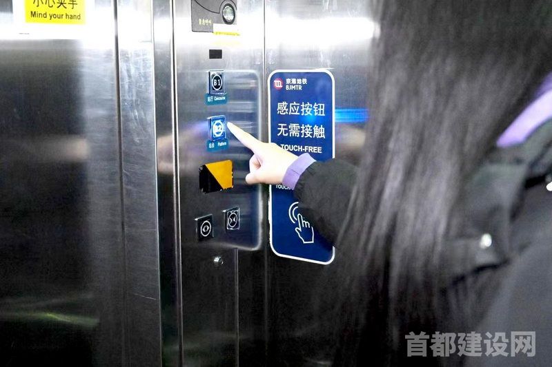 地铁4号线北京南站直梯试点安装了免接触按钮。 ■企业/供图
