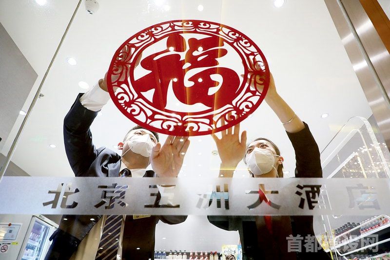 北京五洲大酒店工作人员正在布置委员驻地 ■企业/供图