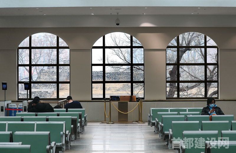 在车站的第8候车室尽头,通透的玻璃幕墙和外部古老的青砖、夯土构成了一道独特的风景线。“这是明城墙遗址的一部分,我们想让旅客在候车的同时,能体会到中华文化的历史底蕴。”马高峰说。