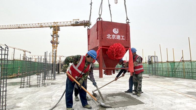 自2021年11月开始施工,项目实现了2022年5月14日完成桩基础工程施工;2022年10月29日完成地下室结构施工等重大节点目标。历时450天,累计完成约8000吨钢筋加工安装、60000立方米混凝土浇筑,顺利实现主体结构提前封顶。2023年3月8日,地下室顺利通过分部工程结构验收。