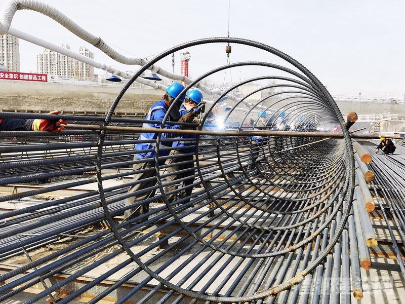 在北京城市副中心站综合交通枢纽工程01标段ii区桩基工程项目现场,映入眼帘的是巨型履带吊把近十几层楼高的钢筋笼吊起,精准无误地将其缓慢放入70米深的桩孔中,让人心生震撼。在长约271米、宽约153米的基坑盖挖法施工范围内,数十台大型旋挖钻机、履带吊、铲车和钩机有序运转。直径2米的钢筋笼是桩基的基础部分,会永久浇筑在地下,这根直径1米的厚壁钢管柱,它在地下与钢筋笼垂直搭接4米后,在内部浇筑高标号混凝土。后期建设中,将作为永久性立柱,重新呈现在高达几十米的地下空间,支撑起这座宏大建筑。