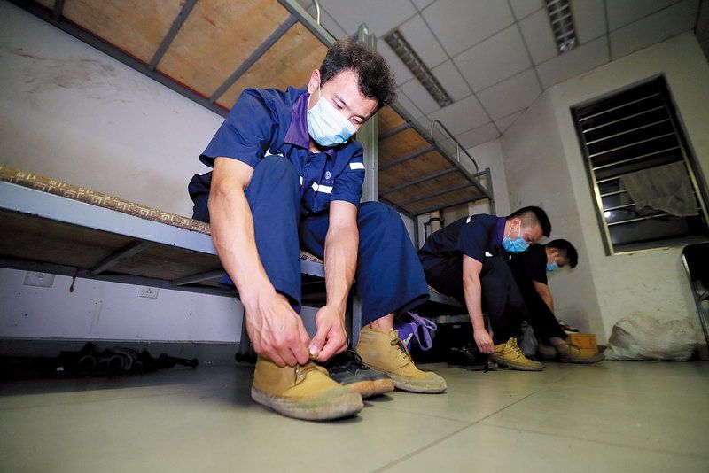 上工前要换上绝缘鞋 ■记者 周宇杰/摄