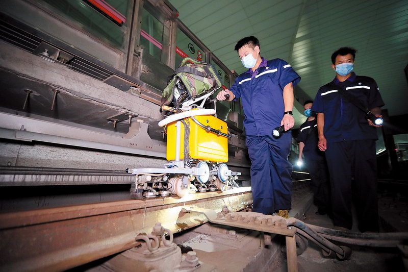 夏夜的轨道上,他们结伴而行。探伤结束时,迎接他们的是逐渐东升的朝阳。忙碌的北京轨道交通路网,守护着乘客的不仅有白天里的车站人,还有夜色里轨道上的“钢轨医生”们。