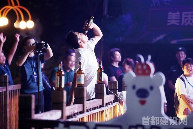 嘉年华现场的喝啤酒大赛上,消费者豪饮五星啤酒。