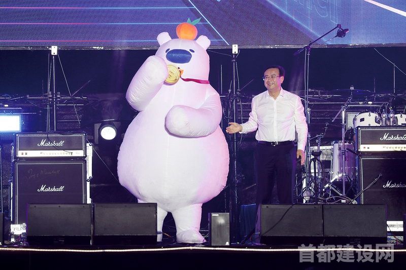 北京一轻控股有限责任公司党委书记、董事长郭明星为大家介绍一轻品牌嘉年华形象大使“冰冰熊”。