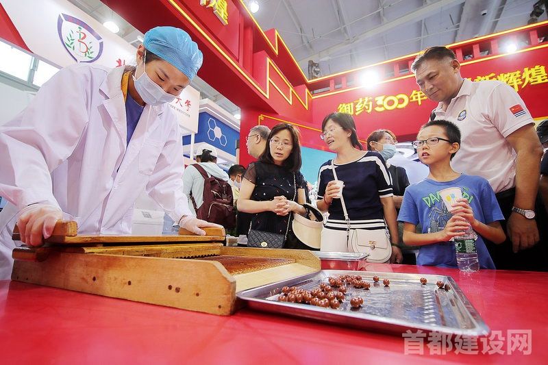 同仁堂集团展示手工蜜丸制作工艺。