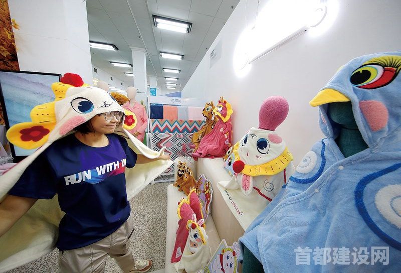 时尚博览会京冠公司的jingguan品牌创新展出具有浓郁京城元素的毛巾产品。