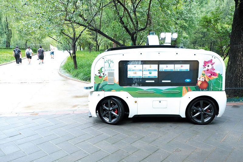 8月18日上午,记者在北京植物园园区主干道上,见到了这台正在巡逻的智能管理机器人。这是一台黑白相间的四轮无人车,高约1.8米,长约2.5米。行驶过程中,车速与行人步行的时速相近,噪音很低,在公园里行驶几乎不会打扰游客。车顶和车身分别搭载了数个激光雷达和声波雷达。