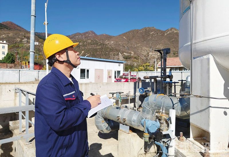 门头沟分公司820锅炉房重建后,工作人员检查点供站lng储罐压力、温度。