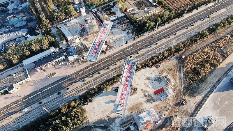 2021 年10 月,津兴铁路上跨津霸铁路连续梁转体完成。