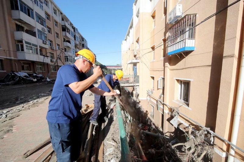在台风“杜苏芮”影响下,首开亿方物业公司所辖部分区域受灾严重,现场断水、断电、物资短缺、交通中断。为助力防汛救灾与恢复重建工作,首开亿方物业公司团总支迅速响应公司党委号召,紧急集结了一支由80名团员青年组成的“青年突击队”,于2023年8月14日、15日紧急前往受灾严重项目,投身防汛抢险救灾一线,开展支援工作。工作过程中,平均年龄仅28岁的青年突击队员头顶烈日,脚陷淤泥,将铁锹和推车作为运输工具,一锹一铲清理厚重淤泥,一车一车推运淤泥杂物……两天时间里,队员们共完成排水20000余立方米、清理淤泥5000平方米。