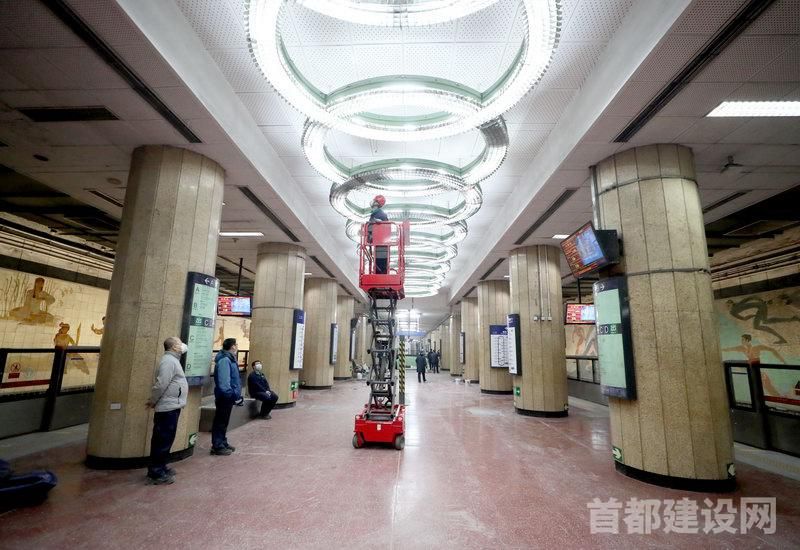 工作人员正在检查东四十条站照明系统 ■记者 周宇杰/摄