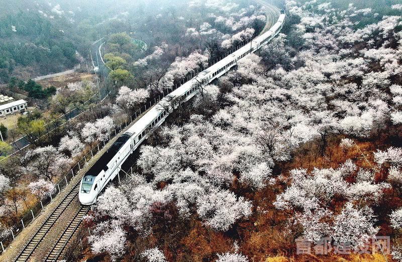 市郊铁路s2线列车穿过居庸关花海 ■记者 周宇杰/摄
