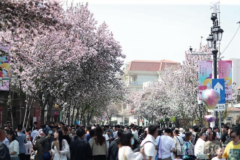 五大道中赏海棠花 ■记者 周宇杰/摄