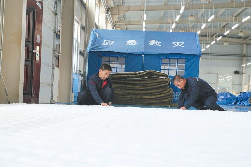 今年3月,佳泰兴和县分公司开始招收员工,武文华在家里坐不住了,因为有过做衣服的手艺,她很快被公司招了进来。上岗前,从北京来的技术骨干手把手教她如何缝制帐篷,两个月培训结束后,武文华成了缝制帐篷的能手。