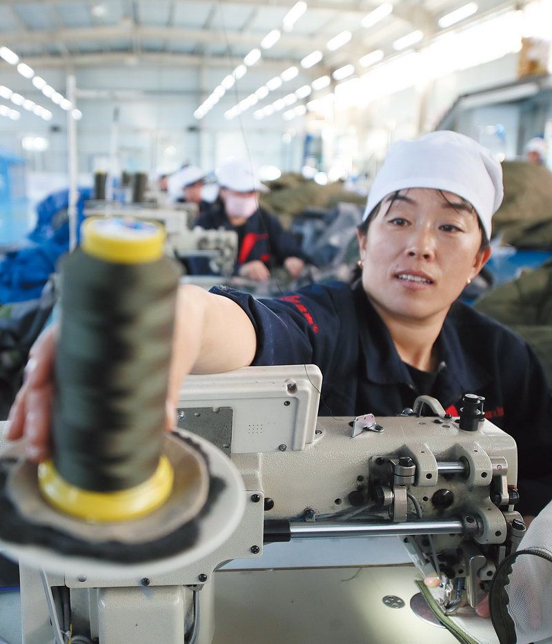 十几年后重拾针线,仅用两个月,女工武文华就成为帐篷缝纫能手 ■记者 周宇杰/摄
