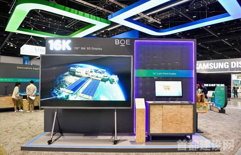 步入展区,首先映入眼帘的是京东方重磅首发的全球首款16k 110英寸超大尺寸裸眼3d显示屏,其以超高清、超高分辨率、多视点、广色域等优势突破了显示行业的创新高度。该产品搭载高色域mini led背光技术以及京东方自主研发的16k交织排图算法,3d视角扩大至60度,广泛应用于广告、会议、教育等多元化场景。