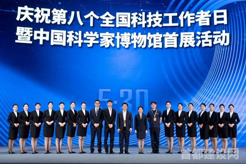 工作人员在庆祝全国科技工作者日暨中国科学家博物馆首展活动现场合影 ■企业/供图