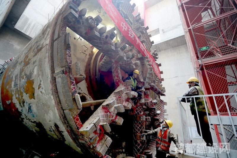 在17号线中段区间贯通现场,盾构机已到达永安里站接收井,工人们准备拆卸盾构机 ■记者 周宇杰/摄