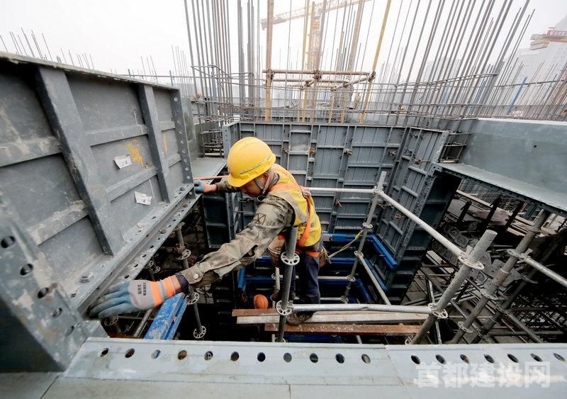 在丽泽商务区内一块被两条河夹住的扇形施工现场,北京建工一建公司万泉寺中阳广场项目执行经理张成正带领团队,为春节前完成首栋建筑主体结构封顶努力着。“这两条河分别在项目的东侧和南侧,加之北侧还有暗河,整个项目就像被夹在了‘水中间’。目前,我们刚刚完成了主体结构全面跃出地面的既定任务,比计划提前了足足1个月。”张成说。