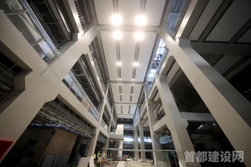 在厂房改造中,项目团队坚持拆旧盖新、原貌复建,将原有部分大型设备进行复建安装。并引入“镜子”理念,将四层屋面全部打造成玻璃顶,并与新增建筑的玻璃幕墙交错咬合打造光影空间,让整个空间更加明亮通透。未来,这里计划引入人工智能、金融科技等高精尖产业,聚焦人形机器人产业,成为石景山区推进人形机器人产业发展的重要产业承载地。