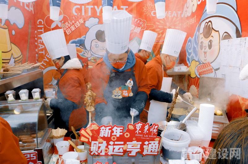 东来顺庙会摊位,工作人员正在忙碌地工作着 ■企业/供图