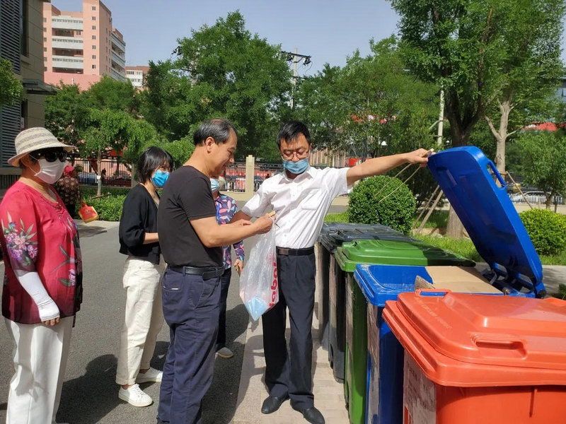 家住育慧里社区的刘阿姨没有在家垃圾分类的习惯,当她把茶叶、用过的口罩、喝完水的矿泉水瓶都放进一个垃圾袋里,走到垃圾桶前时,张金马上叫住了刘阿姨,说道:“您先别急着扔, 咱们分分类。”张金和刘阿姨一起将塑料袋里的垃圾一一分拣出来,并一边分一边请刘阿姨辨认,这是什么垃圾,应该投放到哪个垃圾桶里。投放完毕后,张金把刘阿姨领到一个“垃圾分类大转盘”前,让刘阿姨现场玩了一个“垃圾分类”小游戏。“您转动这个转盘,看最后指向哪种垃圾,猜对了我们有奖呦。”张金笑着说。只见刘阿姨随手一转,指针指向了“碎骨头”那一格,“碎骨头应该属于厨余垃圾,大骨头才是其他垃圾。”刘阿姨思考了一下说。“答对了,送您一卷分类垃圾袋,以后一定要在家将垃圾分好类再投放呀。”张金说。刘阿姨连连点头。