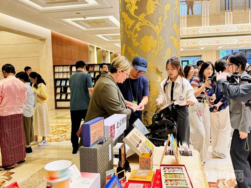 同步特别设置的凸版印刷体验区,嘉宾可亲手印制北京艺术博物馆馆藏文物“大富贵亦寿考墨”纹样的特制明信片:铺设卡纸、蘸取油墨、轻压雕版,当展现了古人追求富贵长寿美好意愿的吉祥纹样经亲手压印成型,油墨香中不仅有手工技艺的温度,更藏着“以物载情”的巧思。有外国友人体验后坦言:“亲手制作的礼物更有意义,这会让我想起在北京的文明对话,想起不同文化如何和谐共存”。