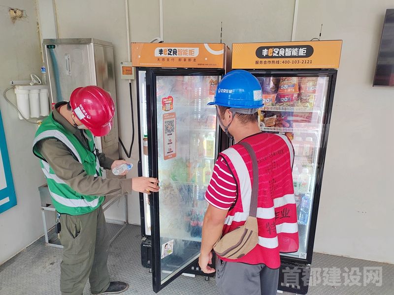 作业工友到休息室智能便利柜购买饮料零食 ■记者 刘偶/摄