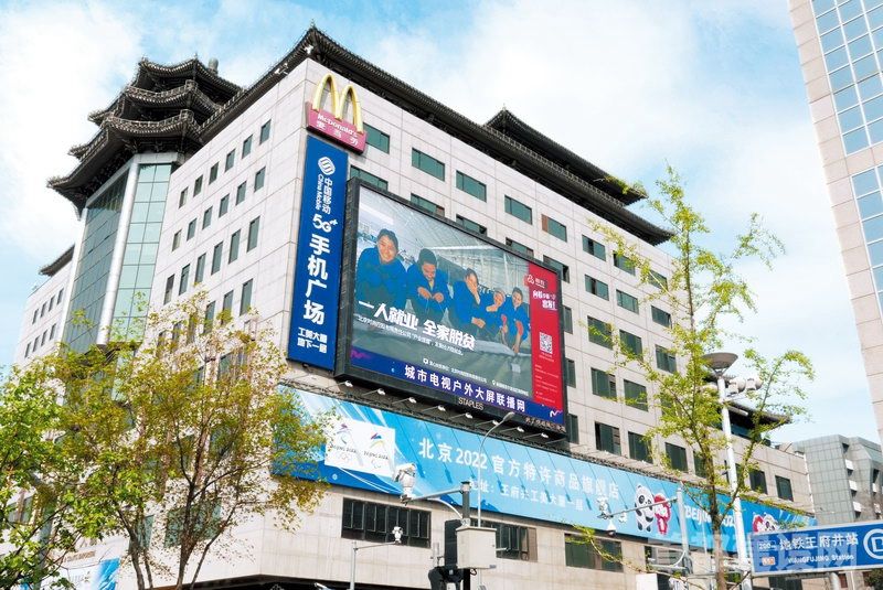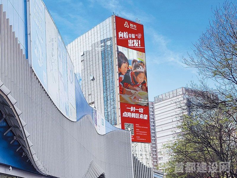 活动启动后,宣传覆盖城市电视旗下楼宇电视联播网、户外大屏联播网及地铁通成灯箱和电子媒体,形成全场景扶贫成果展示传播宣传矩阵。图为 cbd 世贸天阶大屏刊播活动主视觉海报。