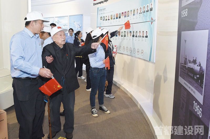 老党员张子昂带领职工们观看展览 ■企业/供图