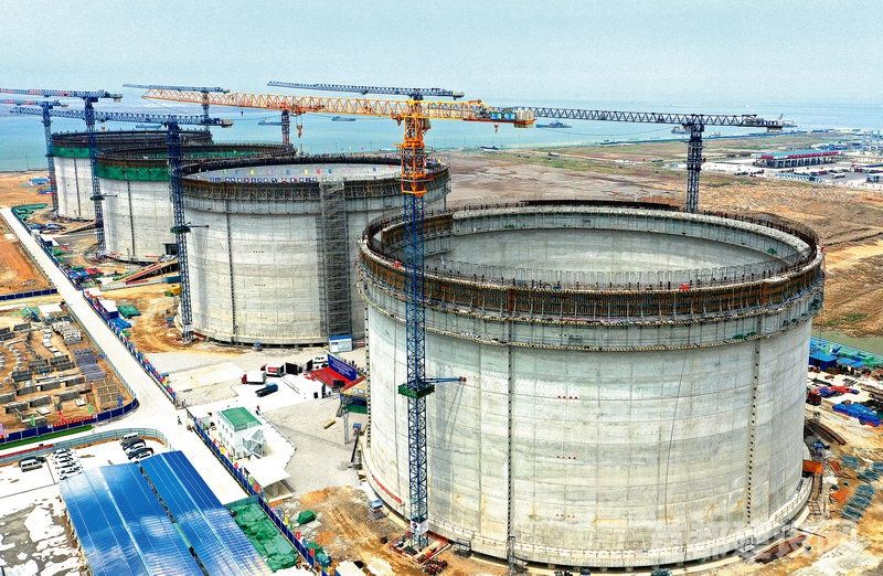 首座lng储罐成功升顶 ■记者 董一鸣/摄
