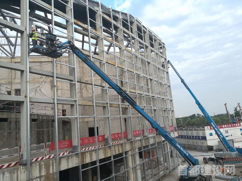 衢州“两中心”项目现场,工人们进行外幕墙安装工作 ■记者 谢峰/摄