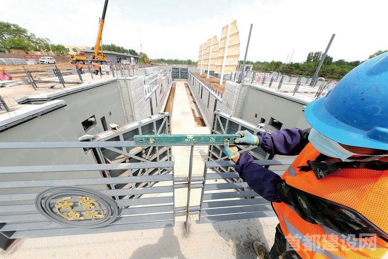 于刚介绍,待北运河通州段40公里河道全线通航后,游客可以乘船品味“一枝塔影认通州”的历史传承,见证运河商务区的高楼林立,感受大运河森林公园的迷人生态。“上闸首和下闸首上镶嵌了浮雕壁画,内容选自《潞河督运图》,展现了昔日大运河上船来船往繁忙的景象。”