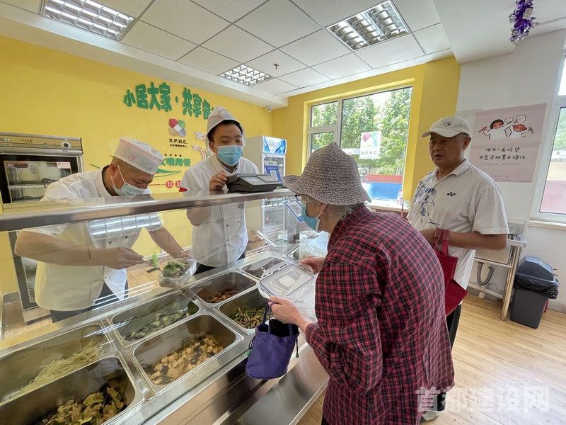 7月15日,距离中午开饭时间还有半个小时,位于东五环外三间房地区的燕保·汇鸿家园公租房5号楼一层的老年餐桌就迎来了顾客。