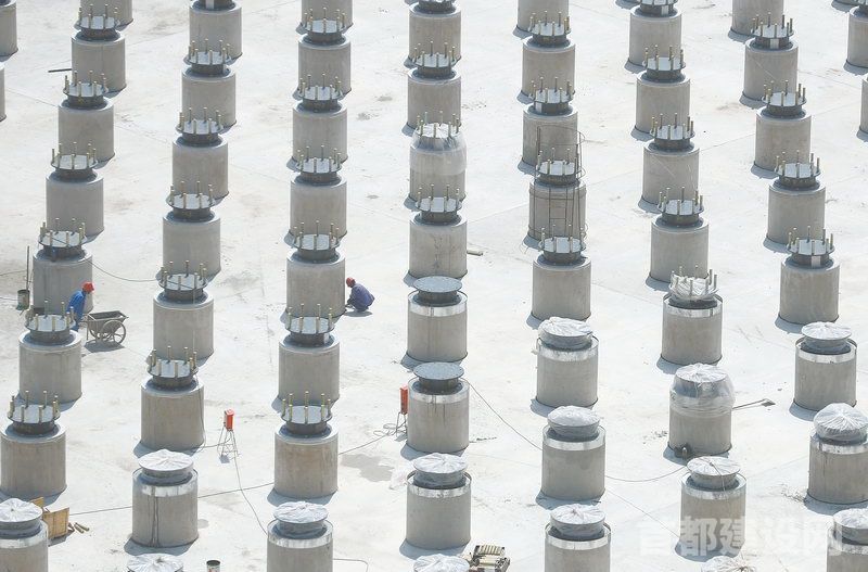 曾经的盐碱滩上要建起如此庞然大物,最大的风险点是不均匀的沉降。首先要解决的就是松软的地基。“我们刚来的时候,都笑称这片地是‘豆腐脑’,我们要做的就是把里面的水挤出来,变成‘豆腐干’。”刘中河说。