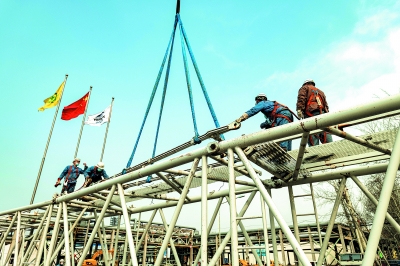 以北京奥林匹克公园为背景搭建室外场馆是本届服贸会一大亮点