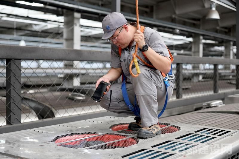 “433车空调机组已完成清洁工作,可以进行检查,现停在b20股道上。”“好的,我马上过去查看一下。”由洋说完,立即准备好安全绳,戴上工帽,带齐检修装备,赶赴检测位置……由洋是北京地铁运营一分公司5号线检修中心技术助理,他与同事们在高温闷热的停车列检库中作业,主要进行地铁列车检修工作,被大家亲切地称为地铁“全科大夫”。14点左右,5号线太平庄停车列检库里面暑气难耐。20多名5号线检修中心员工按照各自负责的区域正为车辆进行检修,其中一组进行车顶空调机组的检查,另一组进行车下机械走行部位